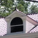 Mozen created mock-ups when necessary and contacted craftsmen across the United States. She found three brothers in Chicago–Renaissance Roofing—with an old government press who made 4,240 pieces of galvanized steel tiles, 720 pieces of valley and eave, 257 pieces of decorative hip/ridge, and 4 decorative finials.