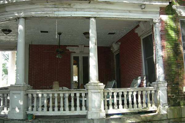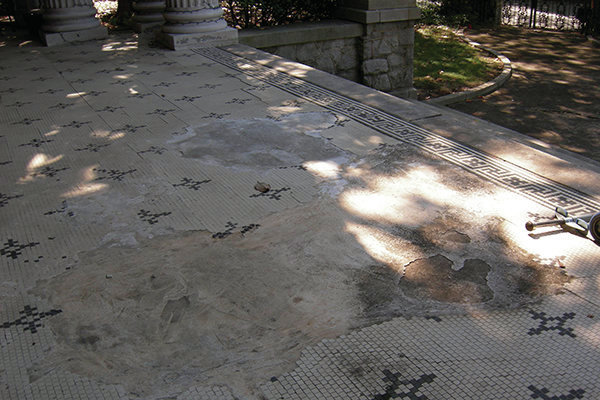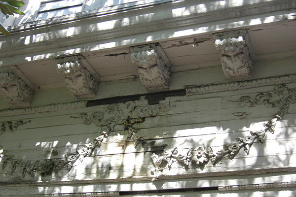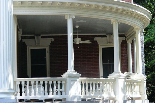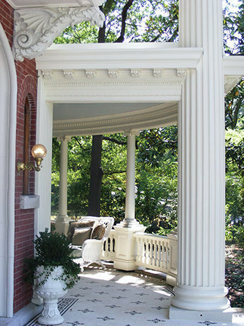 This is a fabulous restoration. They truly restored the exterior of this house using original materials; where there was wood they used wood, they didn’t use fiberglass. You can see the marks in the scrolls on the capitals. How often do you see an exterior tile floor? They restored it and it looks incredible.