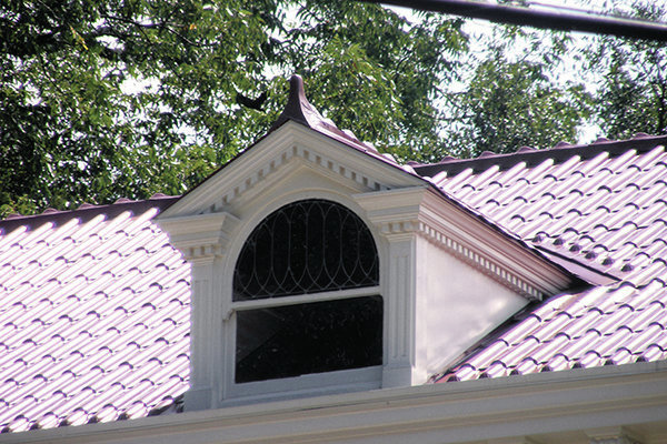 Mozen created mock-ups when necessary and contacted craftsmen across the United States. She found three brothers in Chicago–Renaissance Roofing—with an old government press who made 4,240 pieces of galvanized steel tiles, 720 pieces of valley and eave, 257 pieces of decorative hip/ridge, and 4 decorative finials.