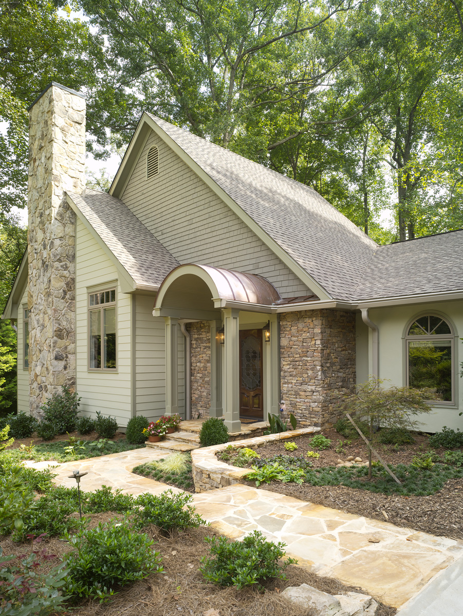 As a design build firm, our additional objective was to create a more inviting street/entry elevation. We visualized a front entry that added charm rather than a front door that dumped guests into the dining room at an old stone planter.