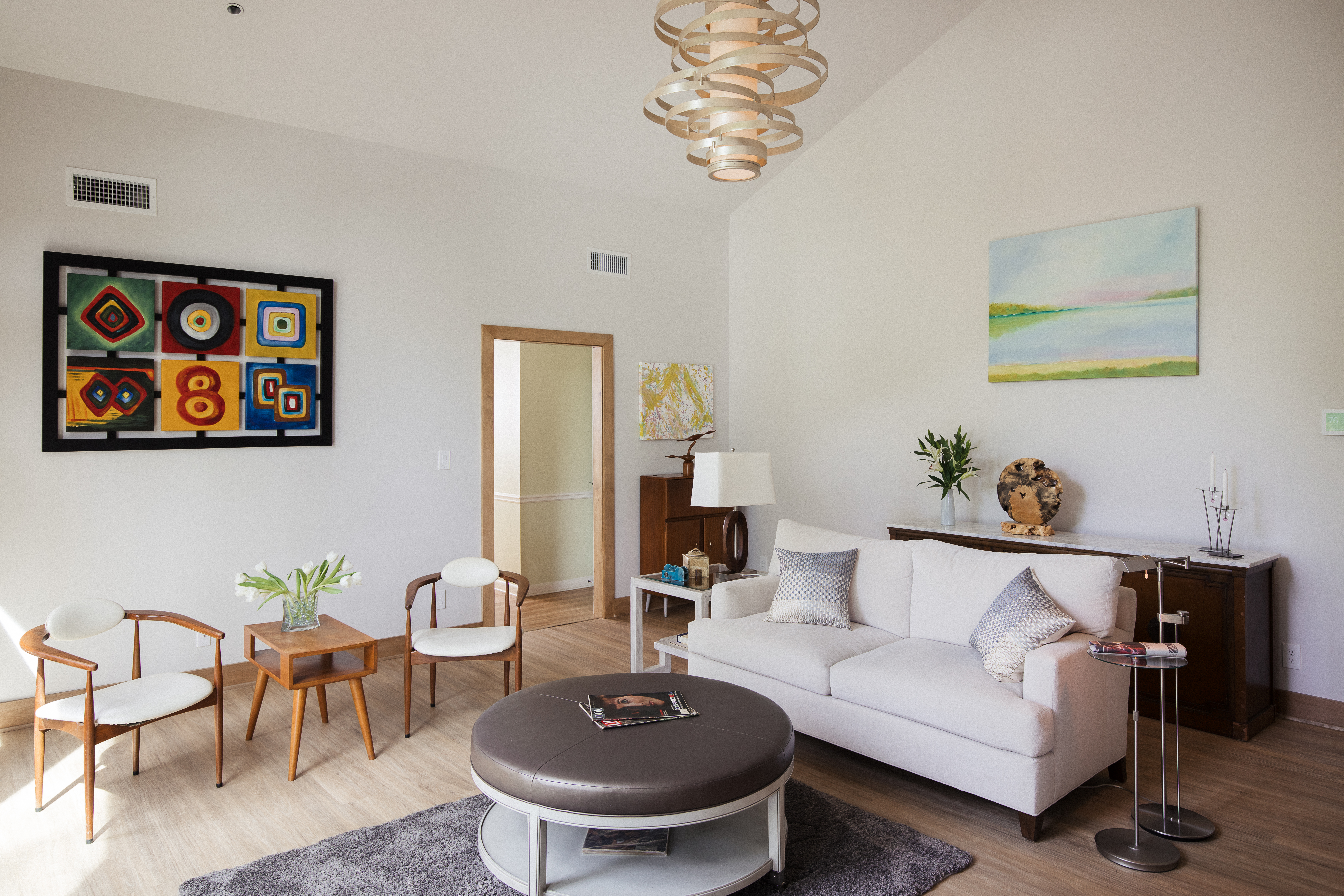 - Before: there was a large, heavy chandelier in the middle of the room that provided inadequate lighting and aggravated the structural issues.