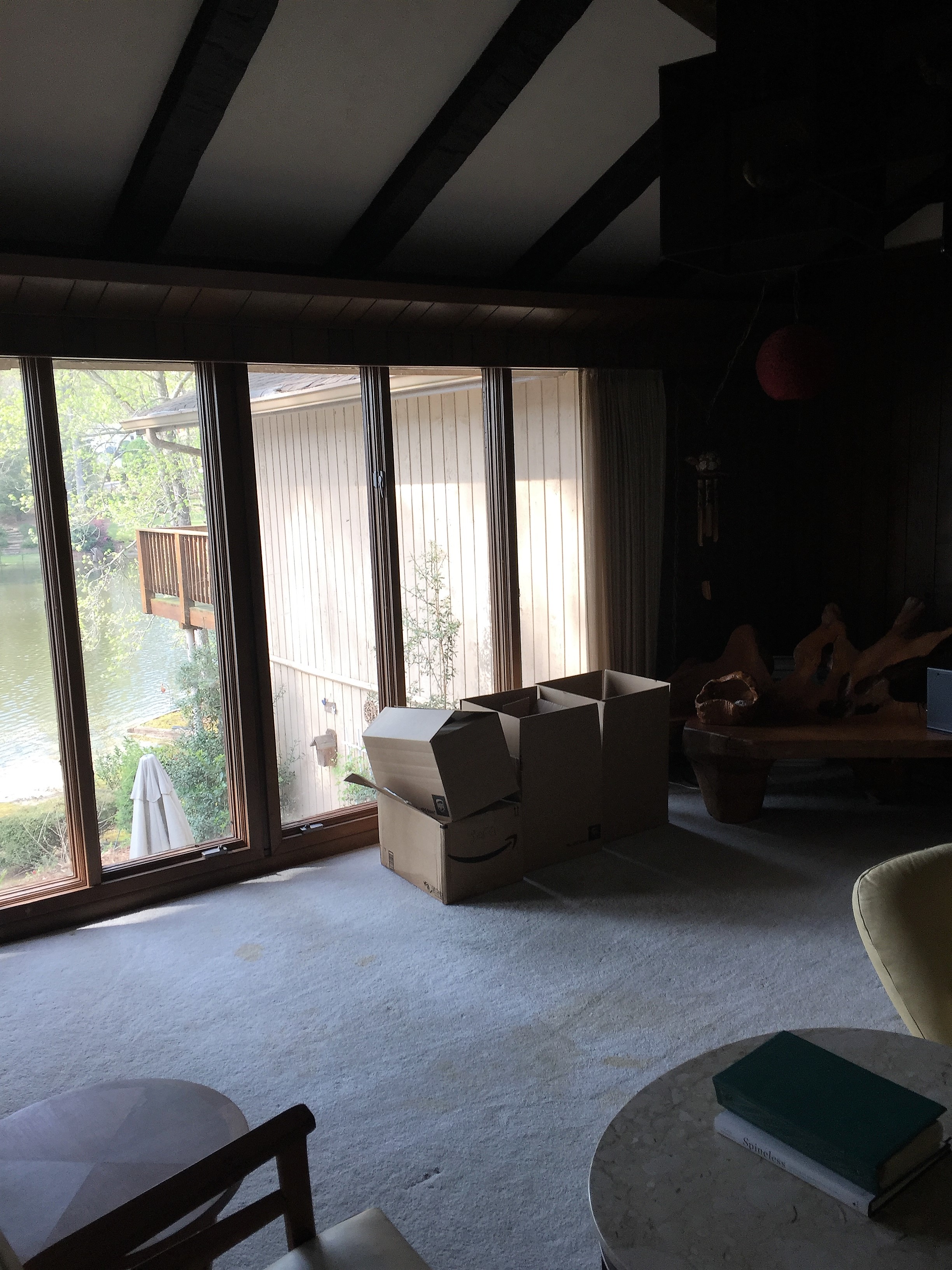 - Before: you can see the sloped roof and note how small the windows look from the outside.