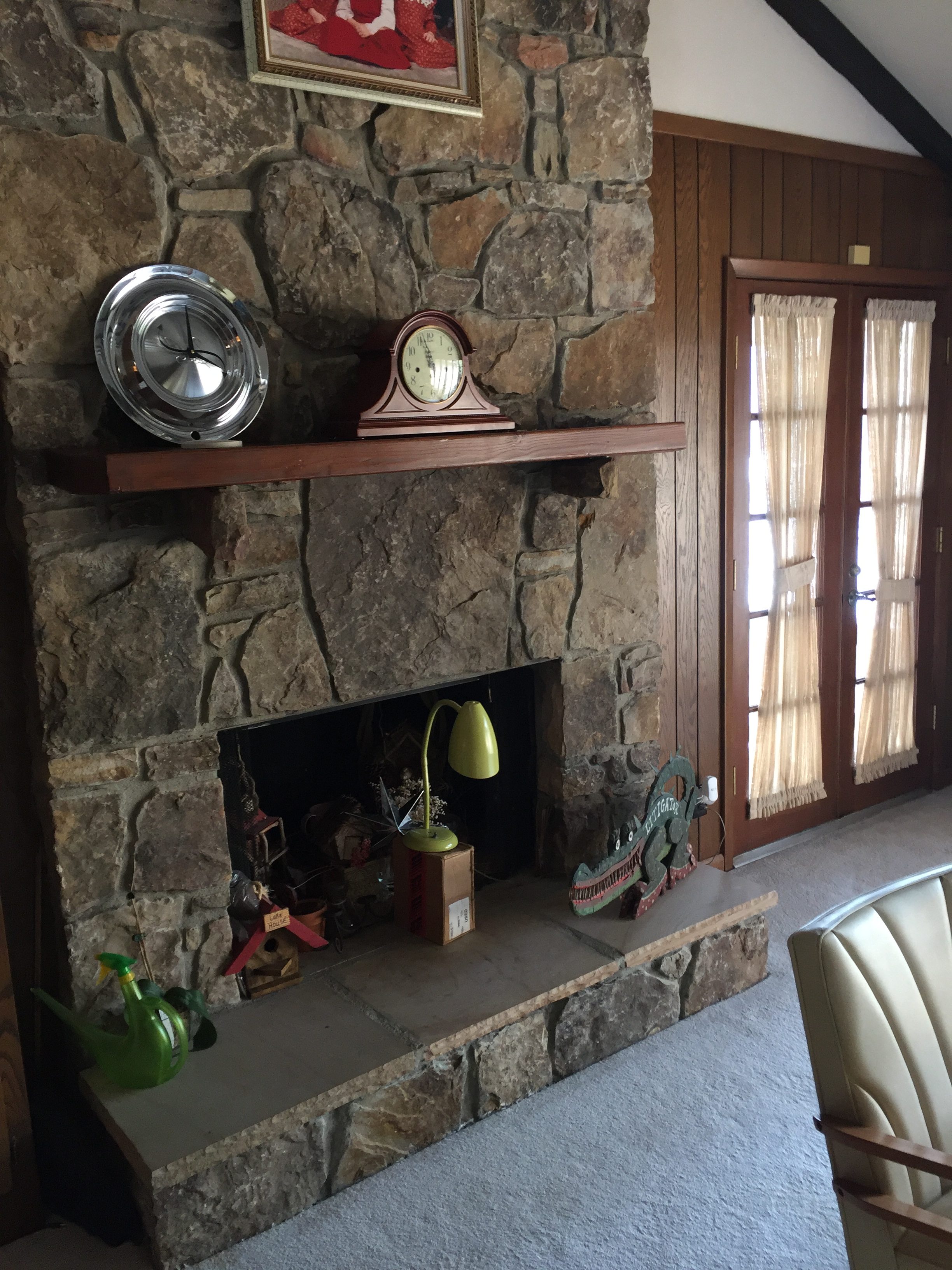 - Before: The original, old-fashioned, stonework fireplace looked as if it had been glued onto the wall.